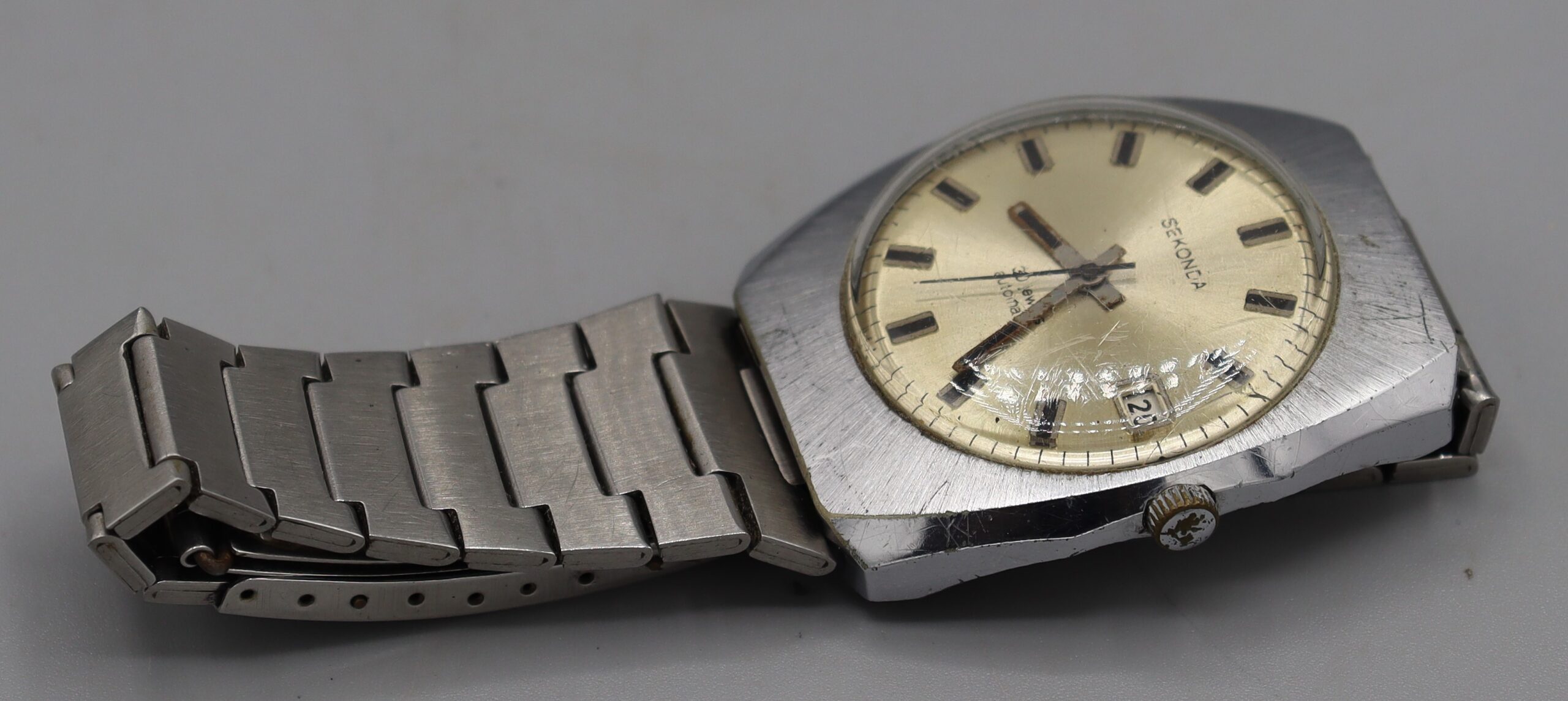 B1_008056 Sekonda Automatic Wristwatch (unboxed) Item Reference: 008056 Category: Personal Accessories (Gents) Format: Artefact Description: Sekonda Automatic watch, 30 jewels, Stainless steel body. Stainless steel wristband with clasp (not expandable) Date: Further Information: Links: B1_008056 B1_008056 B1_008056