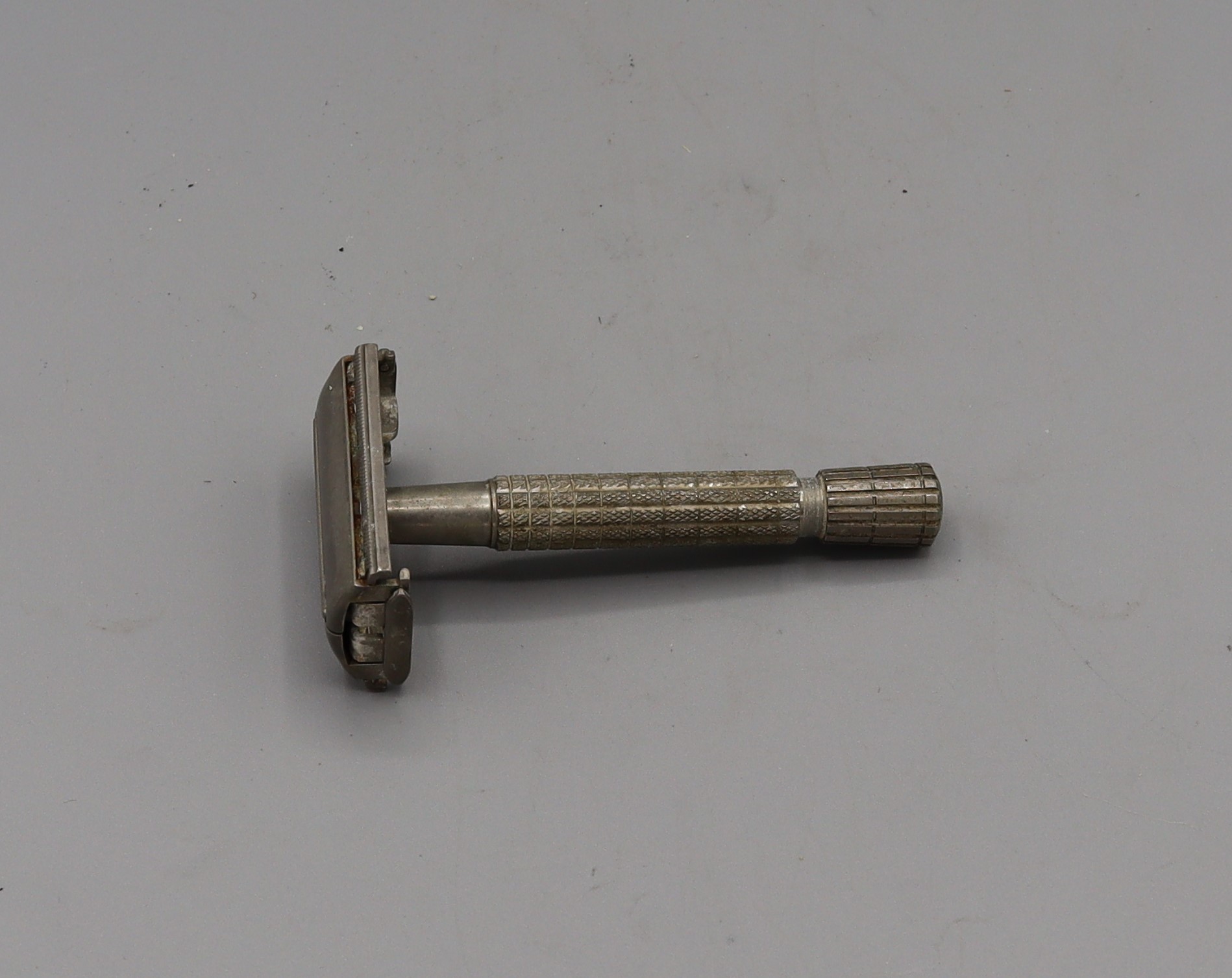 B2.1_008142 Double Edged Safety Razor (80mm) #2 Item Reference: 008142 Category: Personal Accessories (Gents) Format: Artefact Description: Double edged safety razor, twist to open, 80mm long Date: Further Information: Links: