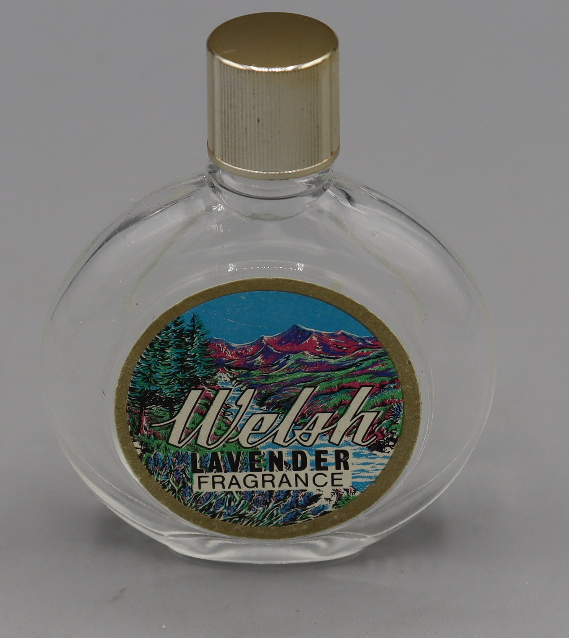 B4_008226 Round Perfume Bottle (small) Item Reference: 008226 Category: Personal Accessories (Cosmetics) Format: Artefact Description: Round Perfume Bottle (small), Welsh lavender fragrance, produced by Snowdon Heather Perfumery Company Date: Further Information: Links: B4_008226_01