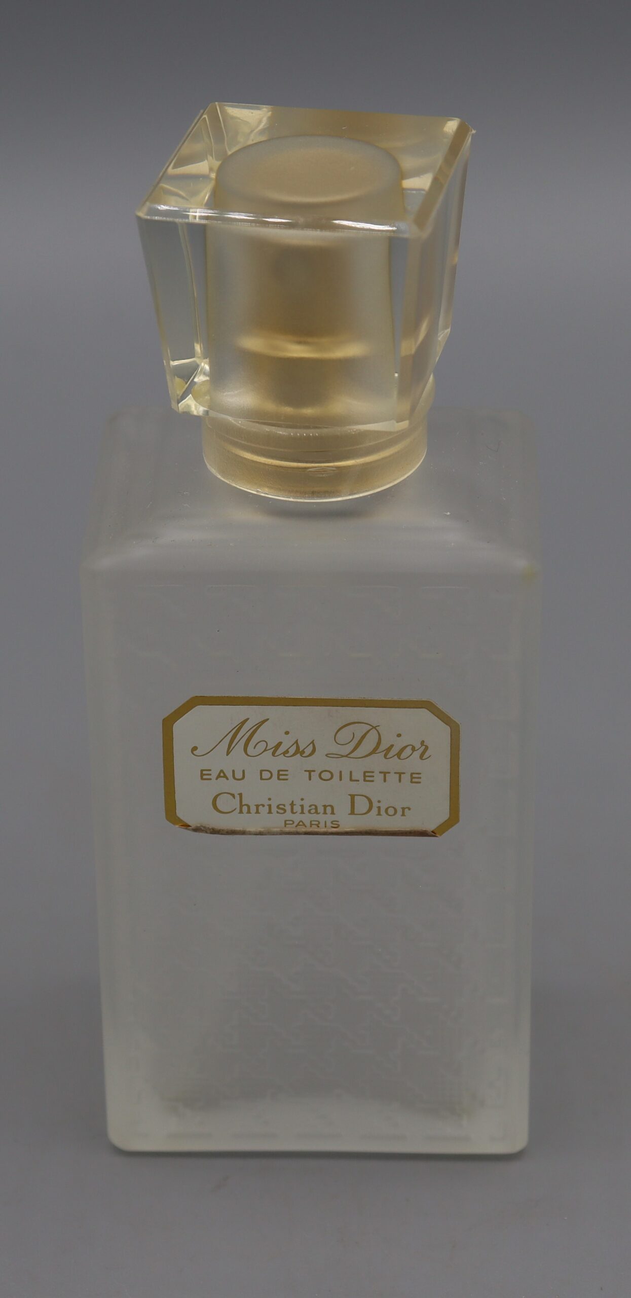 Description: Glass perfume bottle, in original packaging, labelled ‘Miss Dior Christian Dior Eau de Toilette vaporisateur’ 100ml.