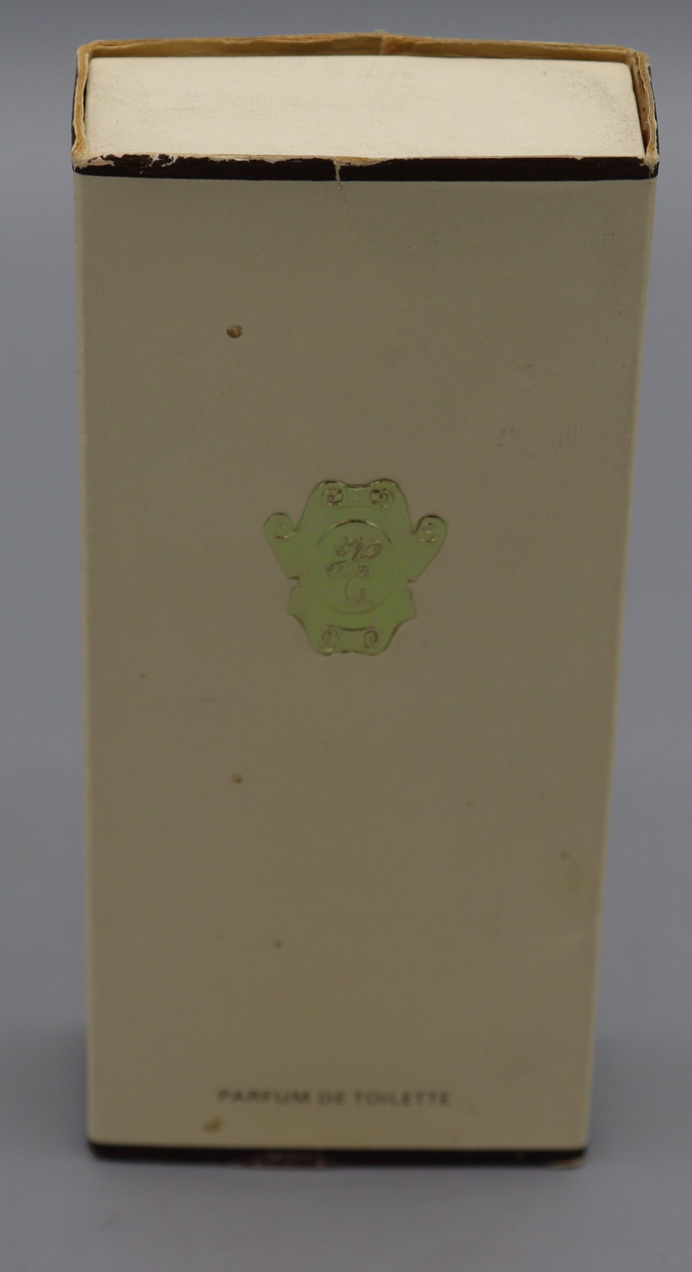 Description: Glass perfume bottle with a gold top and tied with a maroon bow, in original packaging which reads, ‘Parfum de Toilette Helen Courtenay Ltd.’ 8.5 grammes.