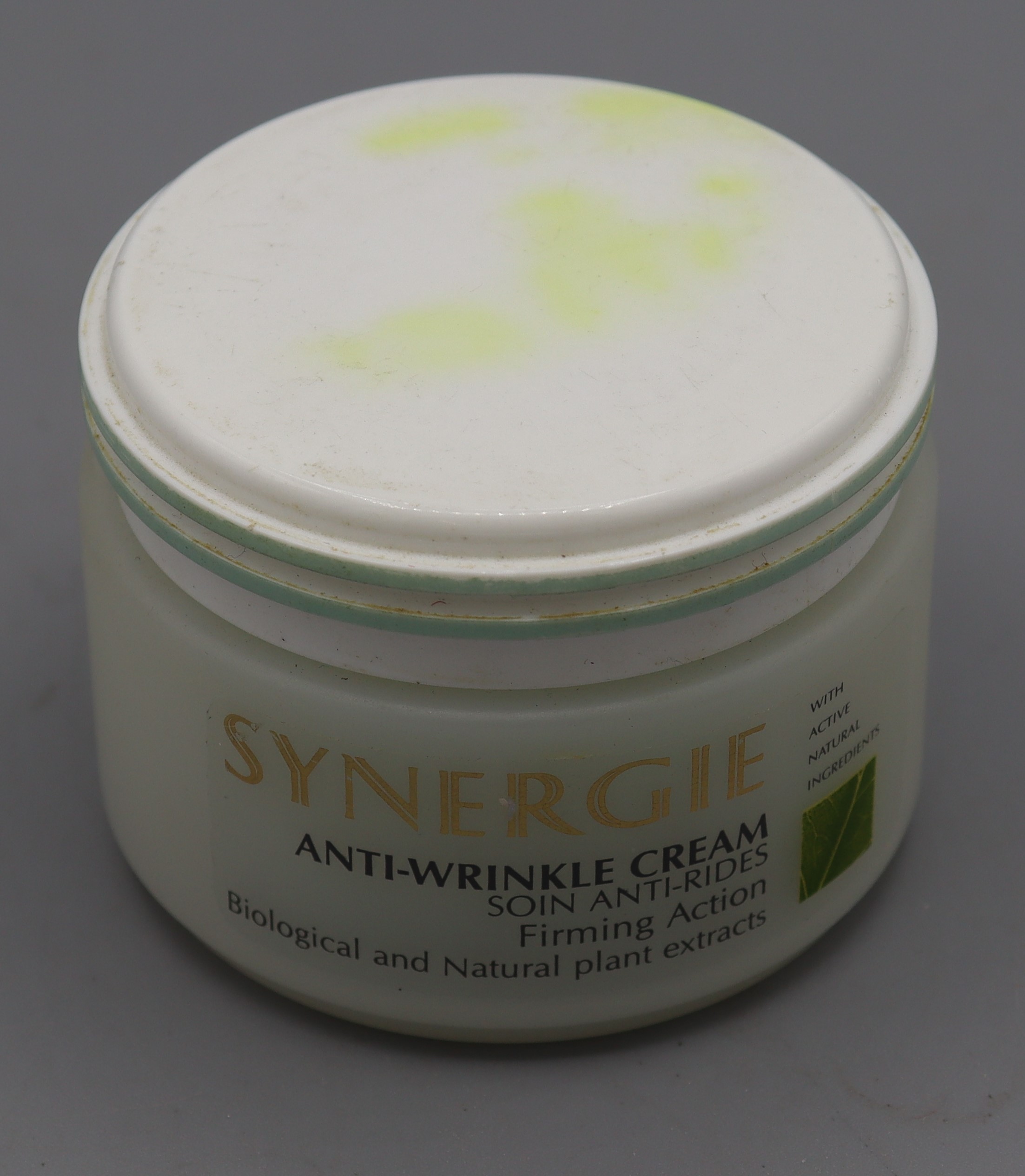 B4_008501 Anti-Wrinkle Cream Item Reference: 008501 Category: Personal Accessories (Cosmetics) Format: Artefact Description: Garnier Synergie anti-wrinkle cream pot, plastic with white top, 40 ml Date: 1992 Further Information: Links: B4_008501_1
