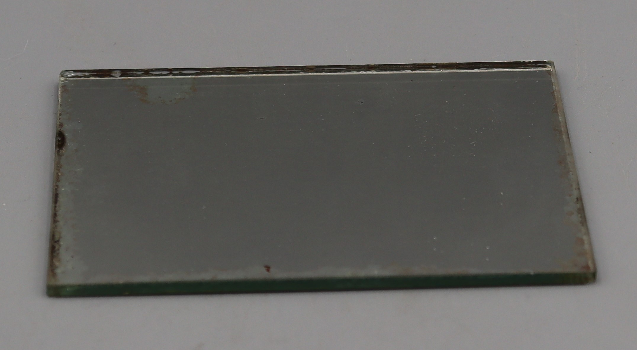 B4_00858 Small mirror (maroon back) Item Reference: 008508 Category: Personal Accessories (Cosmetics) Format: Artefact Description: A small rectangular mirror with a maroon backing Date: Further Information: Links: B4_008508_1
