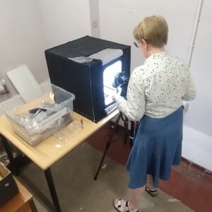 Volunteers were given a box of objects which they worked on from home. They labelled each item and entered details about it into a digital catalogue. When the cataloguing was complete, they brought the box back to the archive where they were trained to photograph each item. The final stage in the process involved creating an entry for each item on the Museum website. To do this, the volunteers were given training and guidance in using WordPress. They also wrote short pieces for the website outlining the contents of their box and details of any particularly interesting items.