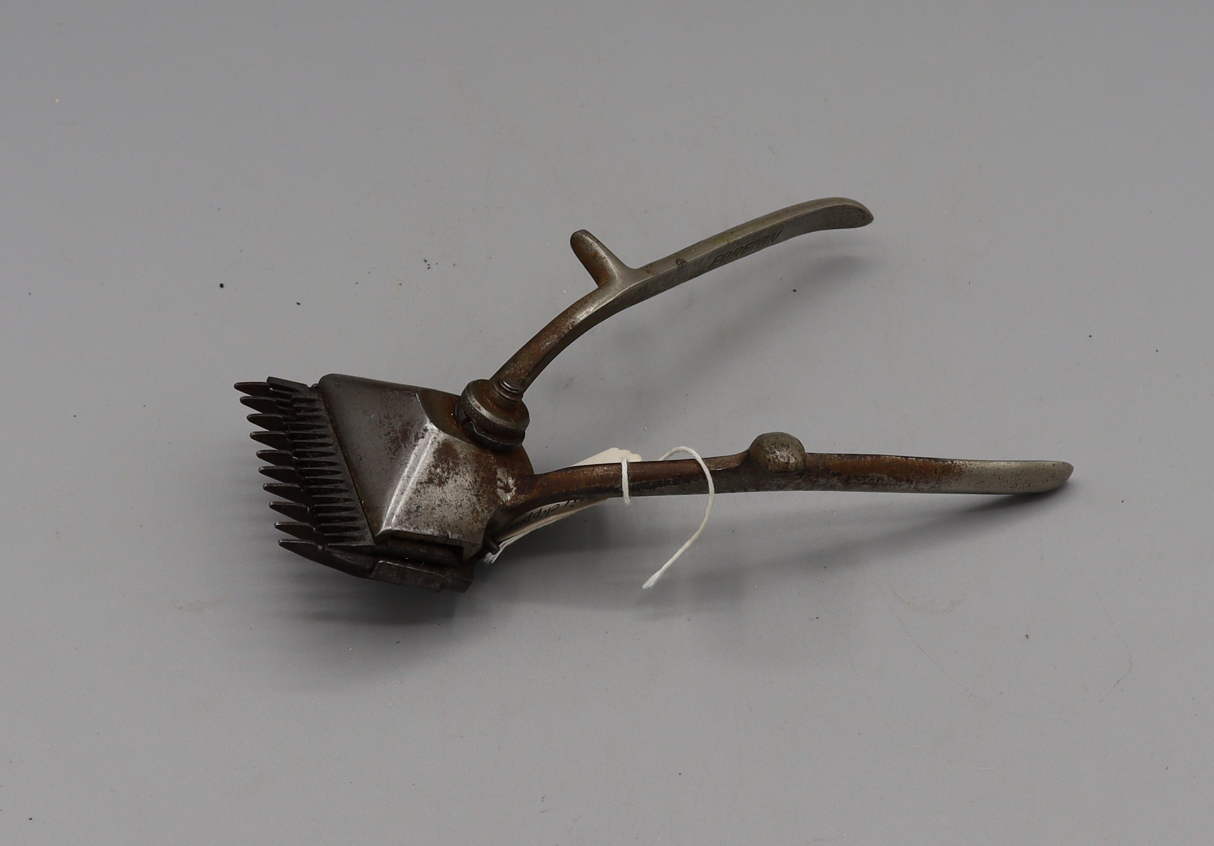 Description: 3 Tail Combs. 1 x Tail comb made of metal (steel?). Comb 100mm long plus tail 100mm long. Teeth all the same size, 15mm. Made in Hong Kong. MF No 1511 stamped on back; 1 x Tail comb made of metal (steel?). Comb 100mm plus tail 100mm. Teeth of mixed lengths 15mm, 12mm, and 6mm Made in Sweden; 1 x Tail comb made of blue plastic. Comb 90mm long plus tail 100mm long. Three rows of teeth, 20mm long. No markings.